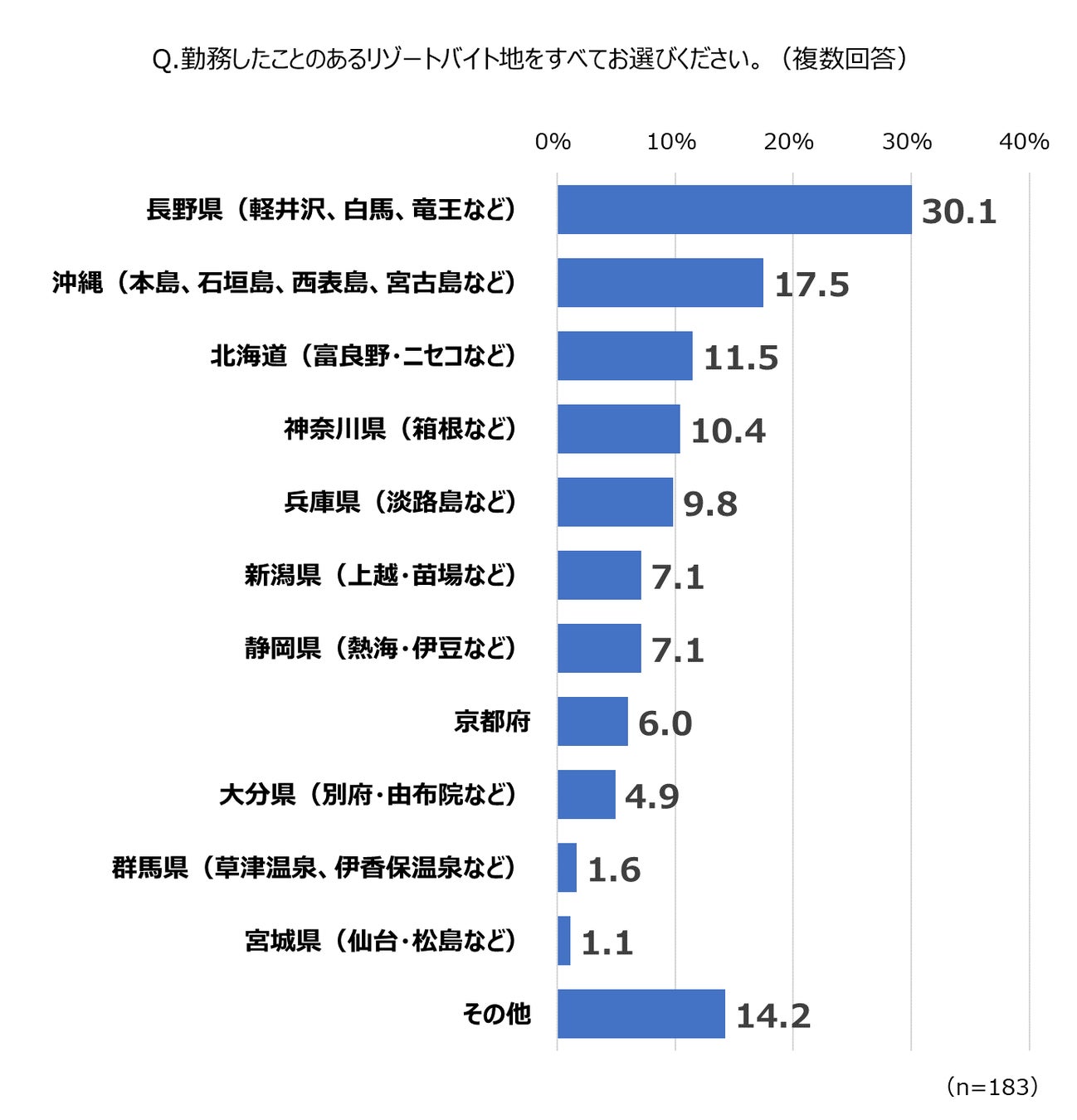リゾートバイト経験者の30.1%が「長野県でリゾートバイトをしたことがある」と回答