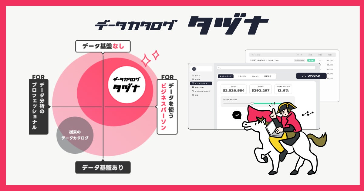 今回のピッチイベントでは、当社が提供するデータカタログ「タヅナ」がどのように企業・自治体の持つ課題を解決できるかのかについて、具体的にご説明する予定です。