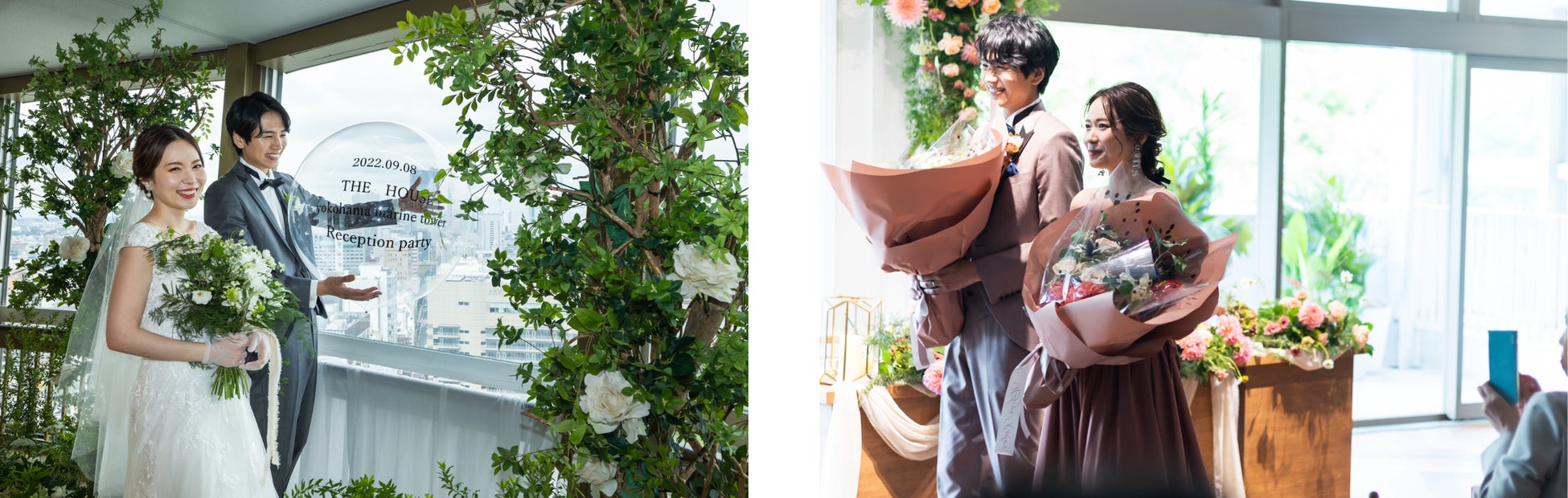 展望フロア挙式(完全貸切)、ドレス、タキシード、ヘアメイク、アテンド、ブーケ、ブートニア、型物写真の8点を無料にて提供