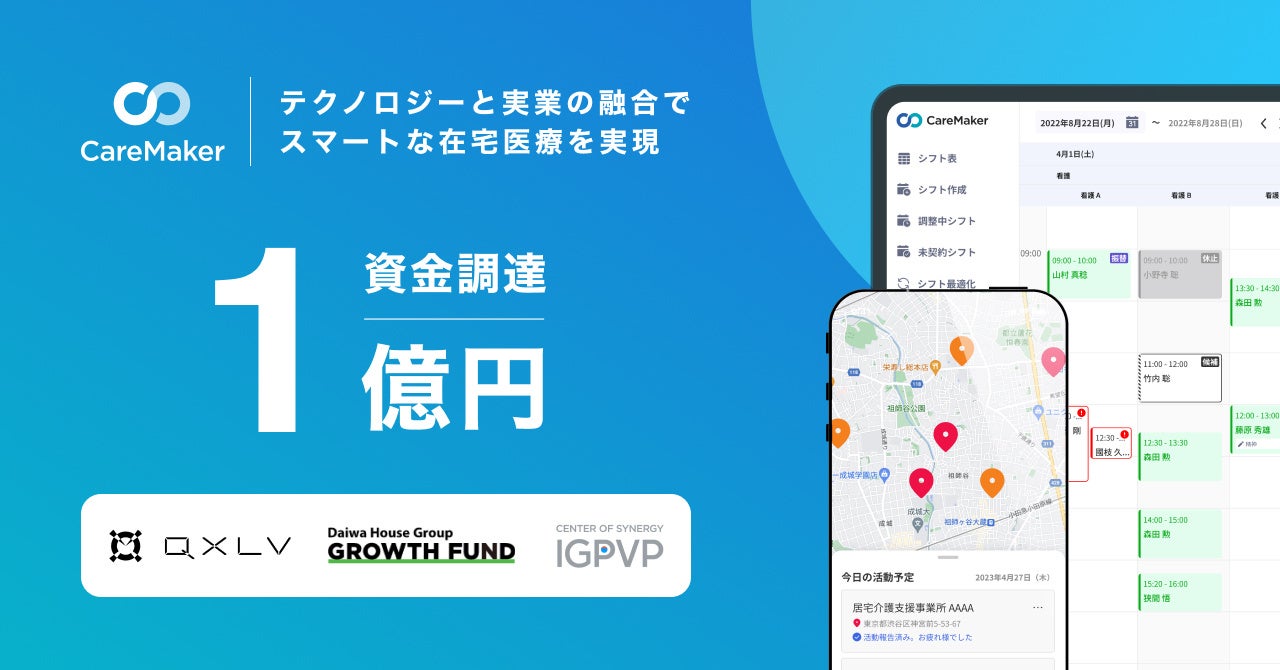 訪問看護・介護のDXを推進する株式会社CareMaker(東京都中央区、代表取締役:山村真稔、以下「当社」)は、クオンタムリープベンチャーズ株式会社、イグニション・ポイント ベンチャーパートナーズ株式会社が運営する大和ハウスグループグロースファンドを引受先とした第三者割当増資により、総額1億円の資金調達を実施いたしましたことをお知らせいたします。