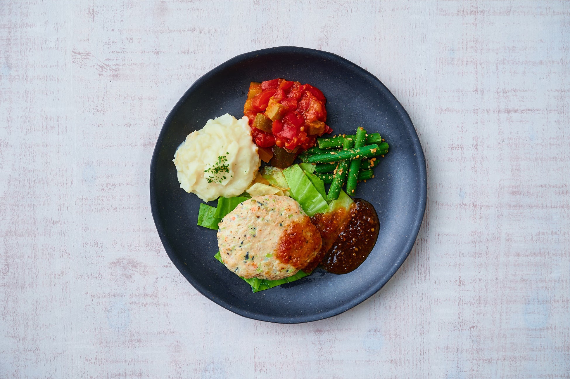 ■グリルハンバーグ(デミグラス)皮なし鶏もも肉 特製照り焼きタルタル