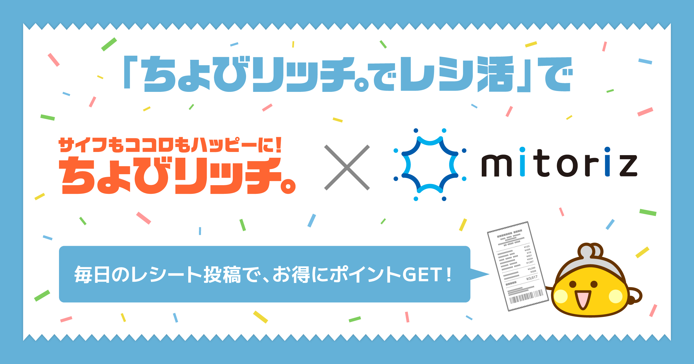 初心者にやさしいポイントサイト『ちょびリッチ』とmitorizが連携!レシート投稿でポイ活できる『ちょびリッチでレシ活』を7月12日より提供開始