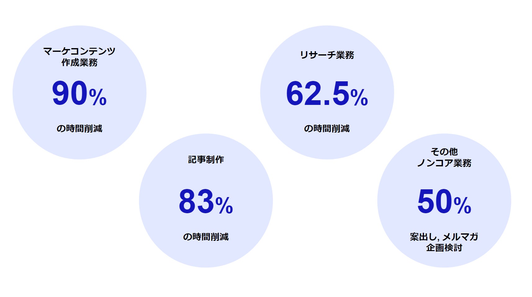 コンテンツ制作業務90%、調査業務62.5%、記事・文章作成業務83%の効率化が可能に。個人プランの提供・法人プランの本格展開を開始