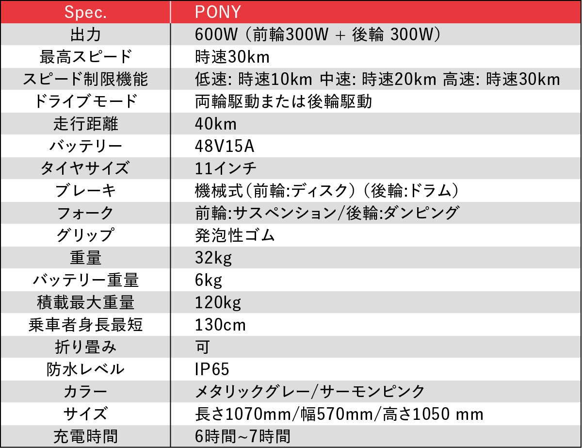 PONY2の一番の機能の向上は、「選択式 両輪駆動」です。旧モデルPONY1が後輪駆動400ワットでしたが、新モデルPONY2は600W(前輪300W+後輪300W)となりました。両輪駆動と後輪駆動を切り替えるボタン操作も簡単です。バッテリーも48V 15Ahでとてもパワフル、総重量100kgで