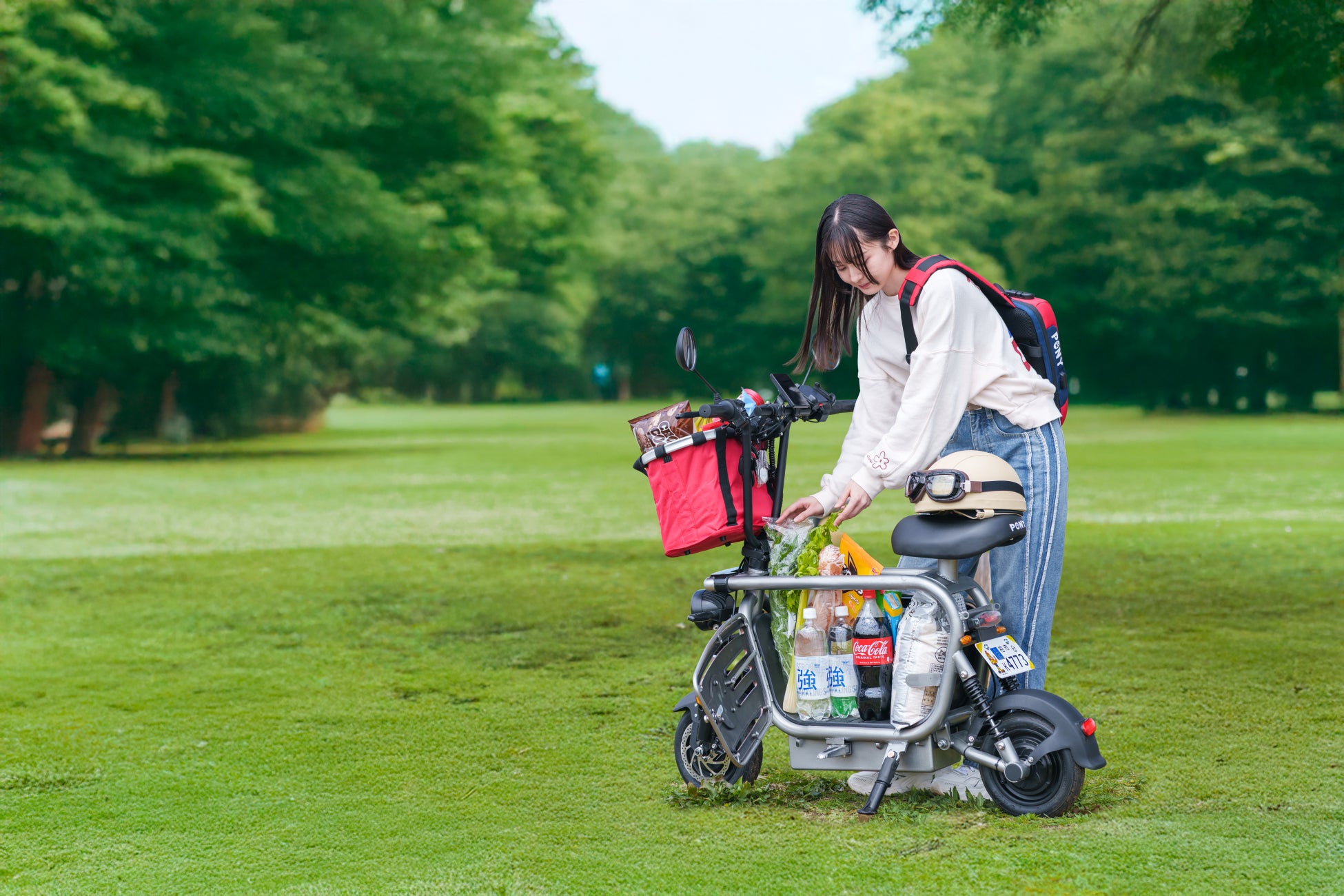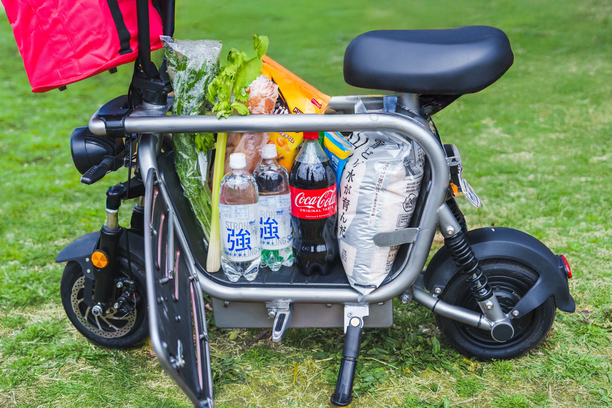 PONY2には大型のフロントケースがセットされています。取り外しはロック機構が備わっており、解錠もワンタッチで簡単。積載量は5kg、日頃の買い物利用に丁度良いサイズです。