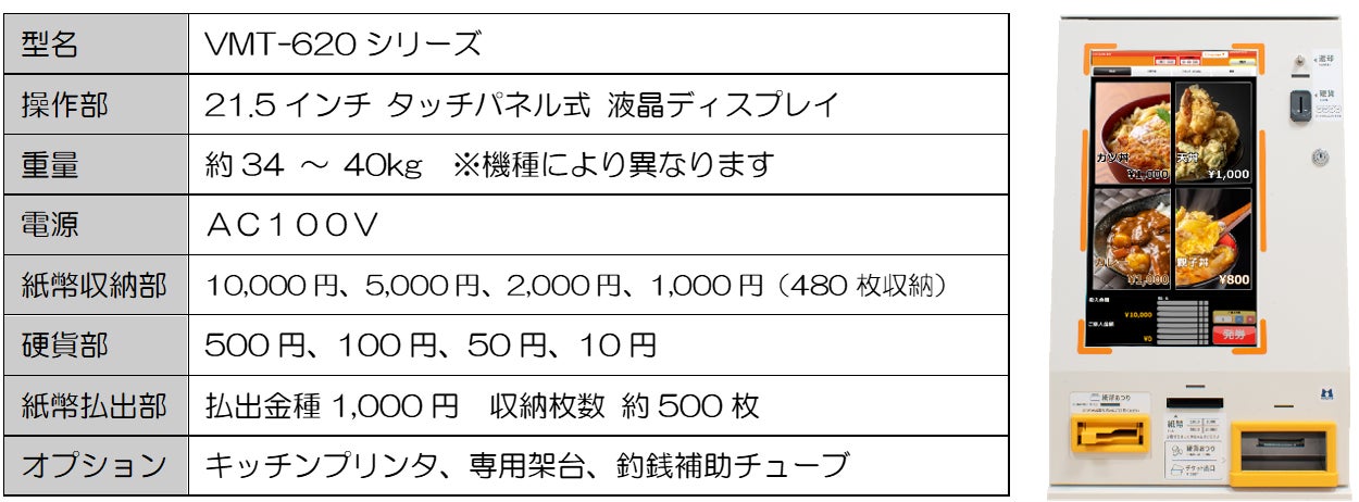 「小型タッチパネル式券売機『VMT-620シリーズ』の概要