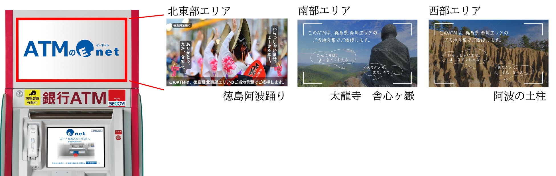 株式会社イーネット(本社:東京都中央区/代表取締役社長:高橋聡一郎)は、株式会社阿波銀行(本店:徳島県徳島市/頭取:福永丈久)と、3月3日(月)から徳島県内のファミリーマート等に設置されたイーネットATMにて、ご当地言葉での音声案内を開始いたします。
