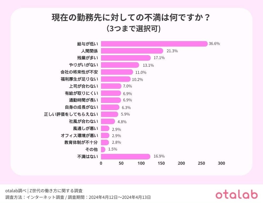 では、Z世代の人々は現在の勤務先にどのような不満を抱えているのだろうか。