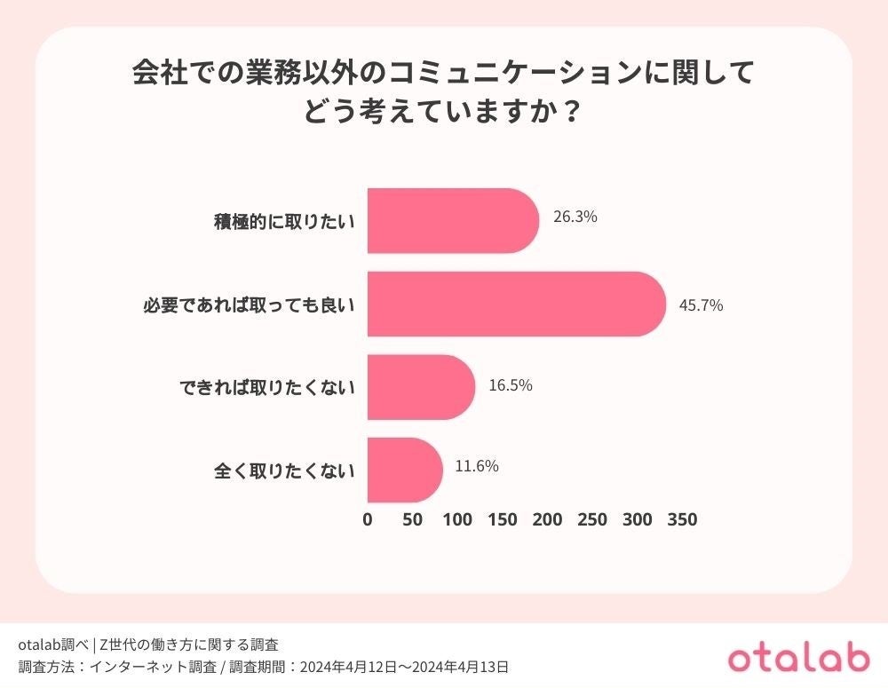 続いて、Z世代の人々が会社での業務以外のコミュニケーションに関してどう考えているのかを知るべく、質問を行った。