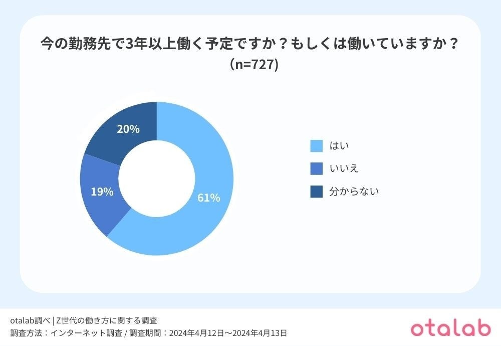 また、『分からない』と答えた人も約2割で、3年以上働くという確信を持っている人は案外多くないことが明らかになった。