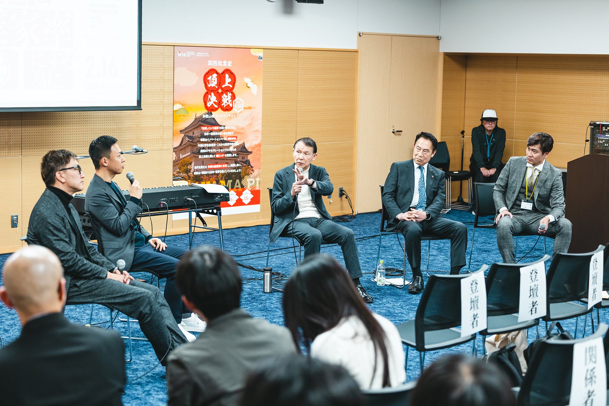 200名ほどの方が参加した当日のイベントは、岸本周平 和歌山県知事、尾花正啓 和歌山市長、株式会社タカショーデジテック 古澤良祐社長、株式会社トイトマ 山中哲男社長、BABY JOB株式会社 上野公嗣社長の5名によるトークセッションから始まりました。
