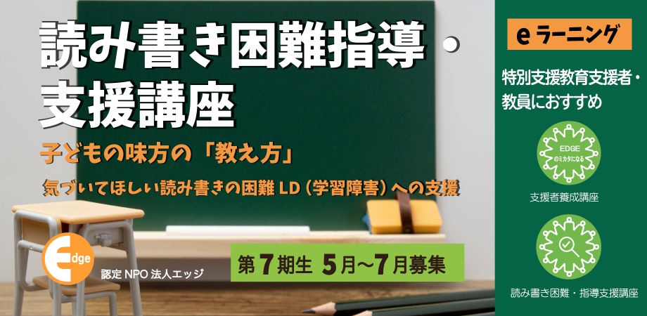 読み書きの困難がある子どもへの指導・支援法を実践的に学べるeラーニング。【読み書き困難指導・支援講座】第7期を4月10日に開講します。