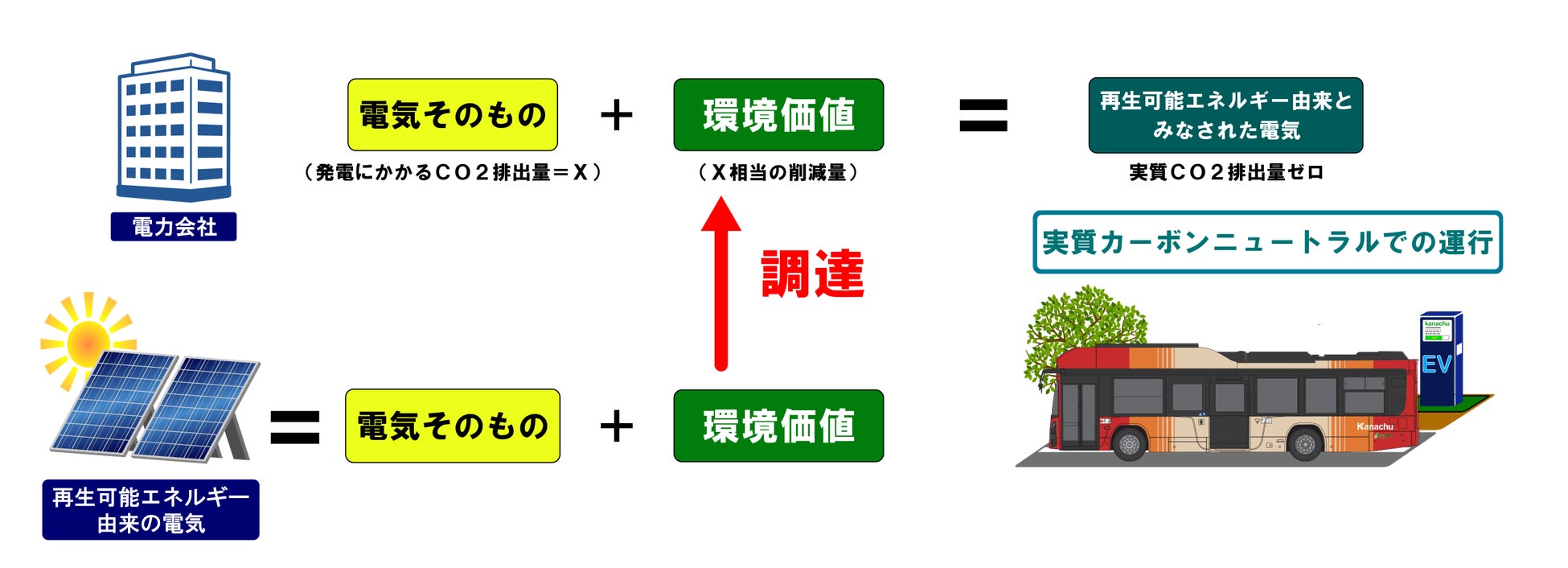 現在、EV路線バスで使用する電力に関しては環境価値を調達することにより実質カーボンニュートラルでの運行を実現しております。今般導入するEV路線バス5両に関しても引き続き同様のスキームにより、カーボンニュートラルでの運行を継続して参ります。