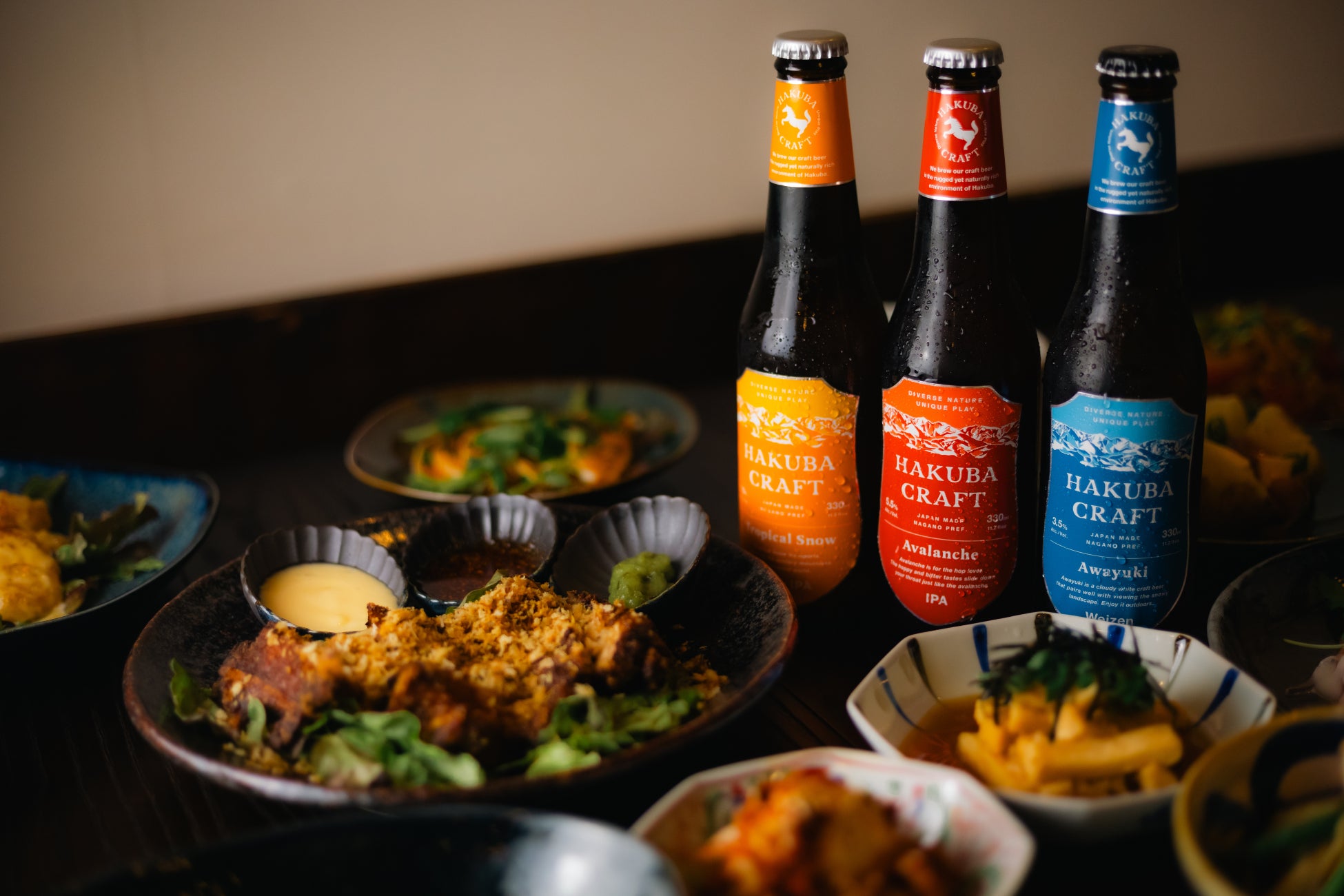 合わせるお酒は、HAKUBA CRAFTのクラフトビールを中心に、厳選した信州の地酒や自家製の発酵ドリンクもご用意しています。HAKUBA CRAFTは、自然豊かな白馬で生まれたクラフトビールで、地元の素材や環境を大切にしながら、品質と味わいにこだわったビールを展開しています。一杯ごとに白馬の自然や文化を感じていただけるようなビールづくりを大切にしています。