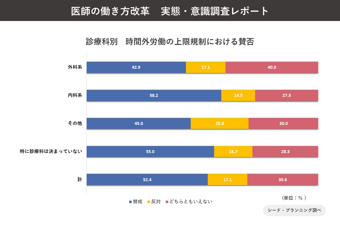 ・診療科別では、最も「賛成」が多かったのは内科で 58.2%だった。外科については「どちらともいえない」が最も多い結果となりました。