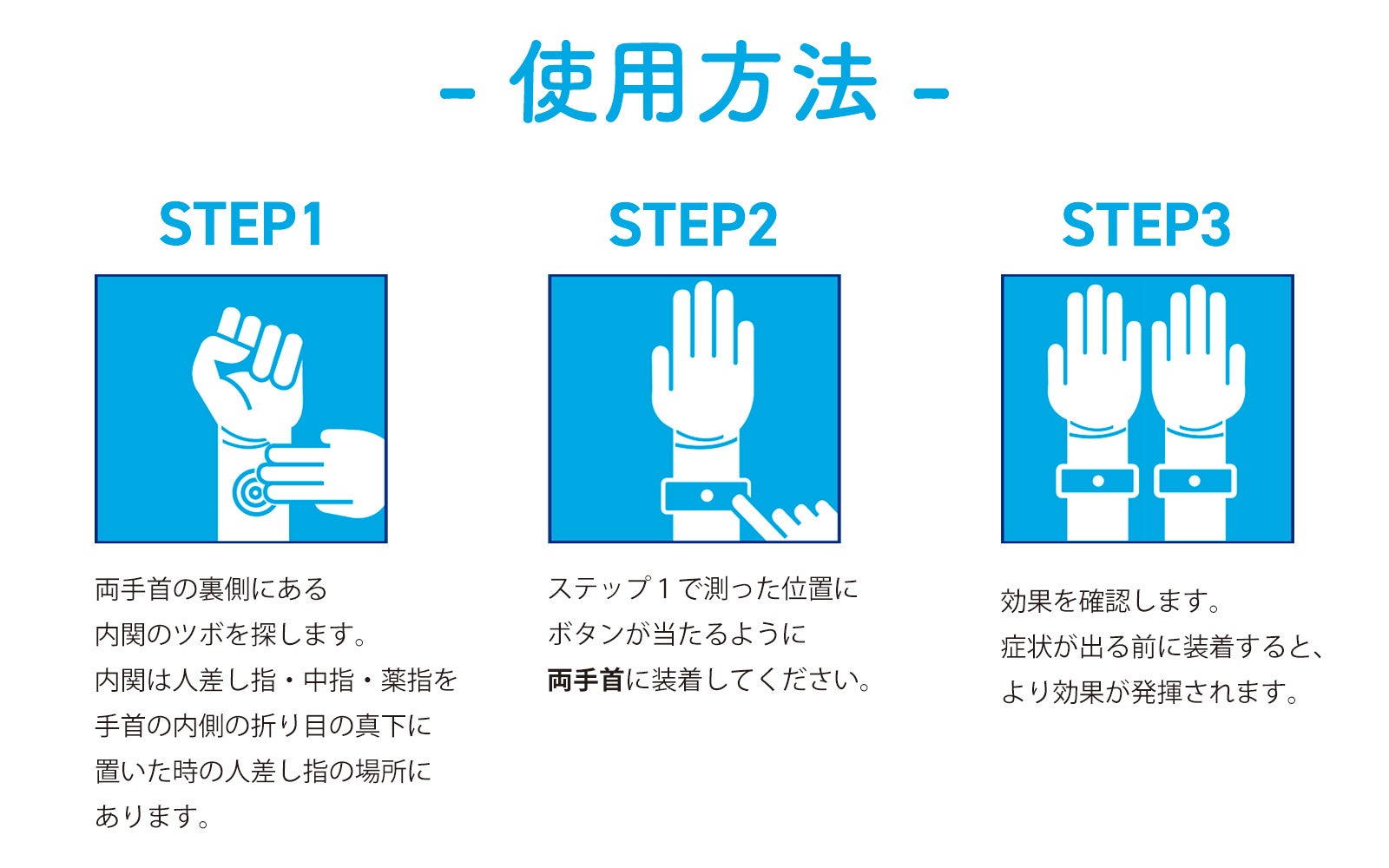 ※(2)内関ツボは、https://www.presby.co.jp/products/sukkiri-band-adult/をご確認ください。