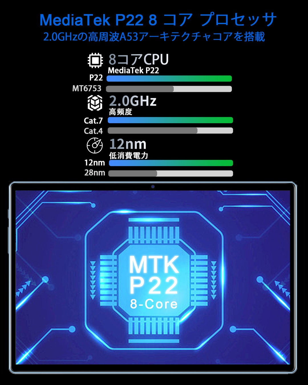 P20Sタブレットは高性能MTK P22を搭載して、8コアCPUで最大周波数2.0Ghz対応する。