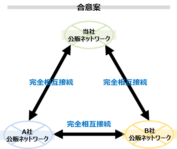 この度、業界全体の効率化および新規参入の促進に寄与するため、当社を含む公販ネットワーク提供ベンダーは、互換性を確保し完全相互接続を実現することに合意しました(図参照)。完了目途は2025年度末になります。
