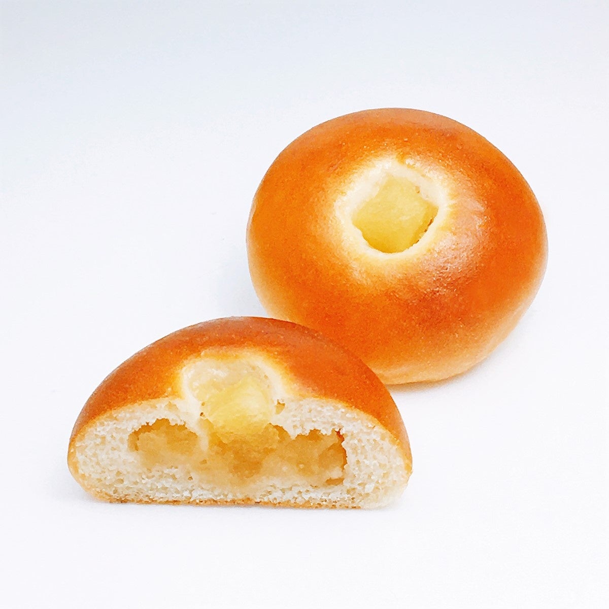 香り高い酒種生地に、青森県津軽産のふじりんごのシロップ漬けと白餡、ケーキクラムを混ぜて、