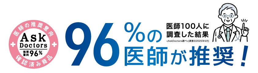 約34万人以上の医師会員を有する日本最大級の医療従事者向け専門サイト 「m3.com」 を運営するエムスリー株式会社が、会員医師による商品やサービスに対する客観的な評価を行うサービスで、一定基準を満たした場合にのみ認定マークを付与し、「医師の推奨意向確認済み商品」 となります。