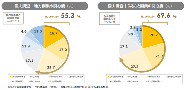 ※ふるさと副業:生まれ(育っ)た土地や、以前に住んだり、なじんでいた場所での副業を指す