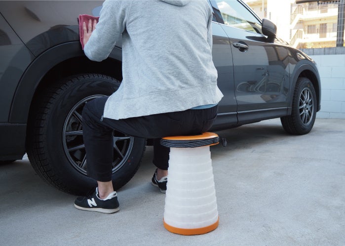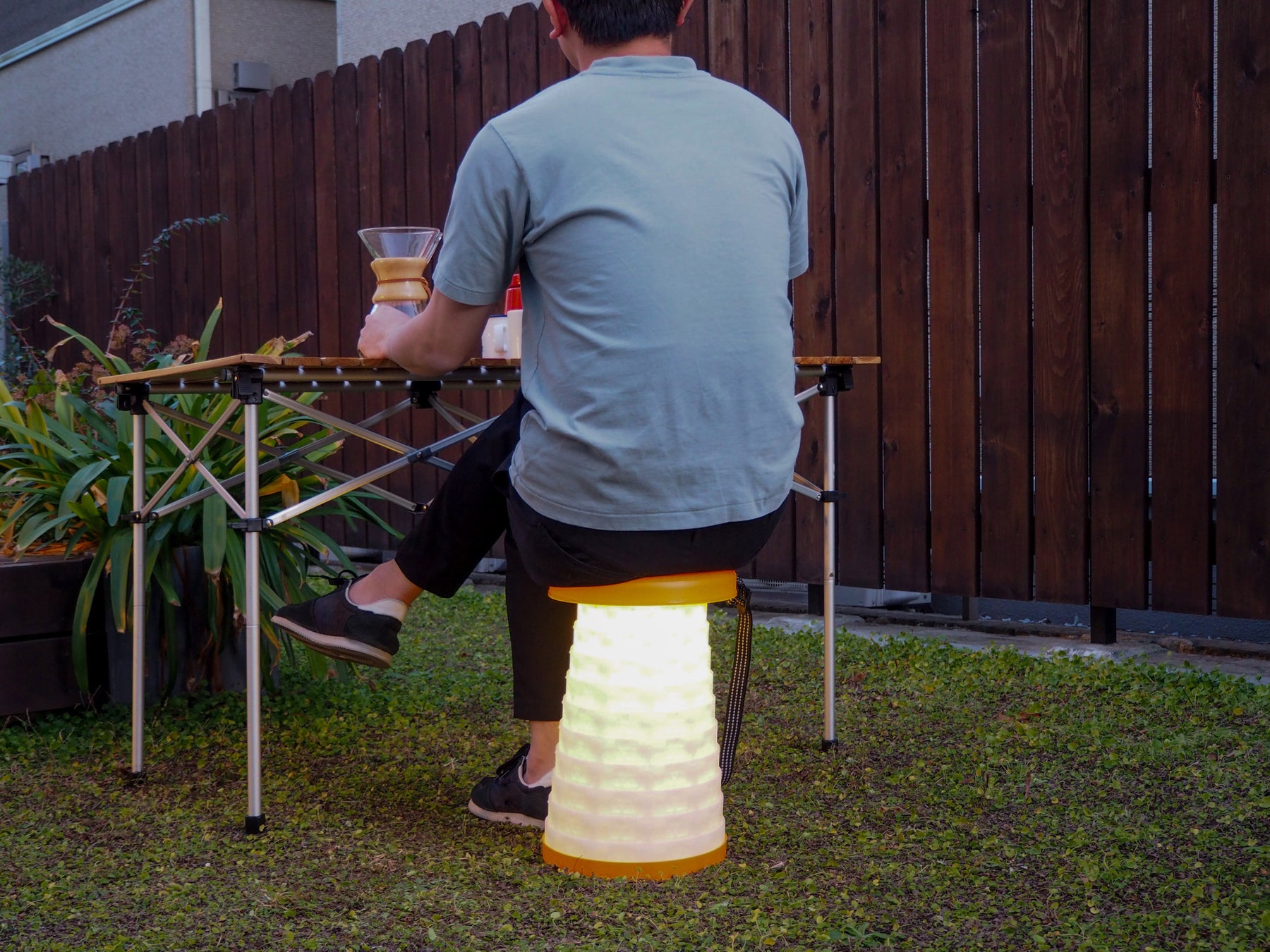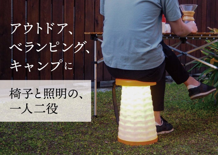 本プロジェクトの製品は1秒で出せて座れてランタンにもなる折りたたみチェアです。