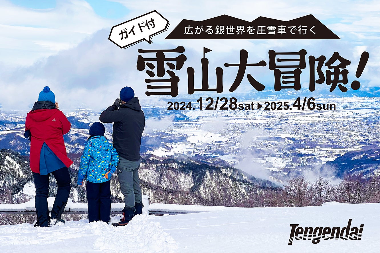 山形県米沢市のスキー場・天元台高原で「雪山大冒険」が12月28日(土)にスタートする。圧雪車に乗車し、雪に閉ざされた冬山に向かって探検する人気企画で、今年は秘境を独占できる貸切プランを設定。今シーズンの開催期間は2025年4月6日(日)まで。