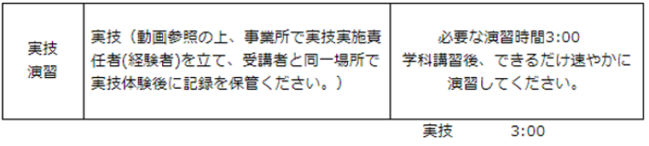 ※実技は、事業所においてリスクアセスメントツール(Excel・PowerPoint等)、道具をご準備の上、「実技実施責任者(経験者)」を立て、受講者と同一場所で対面で実施してください