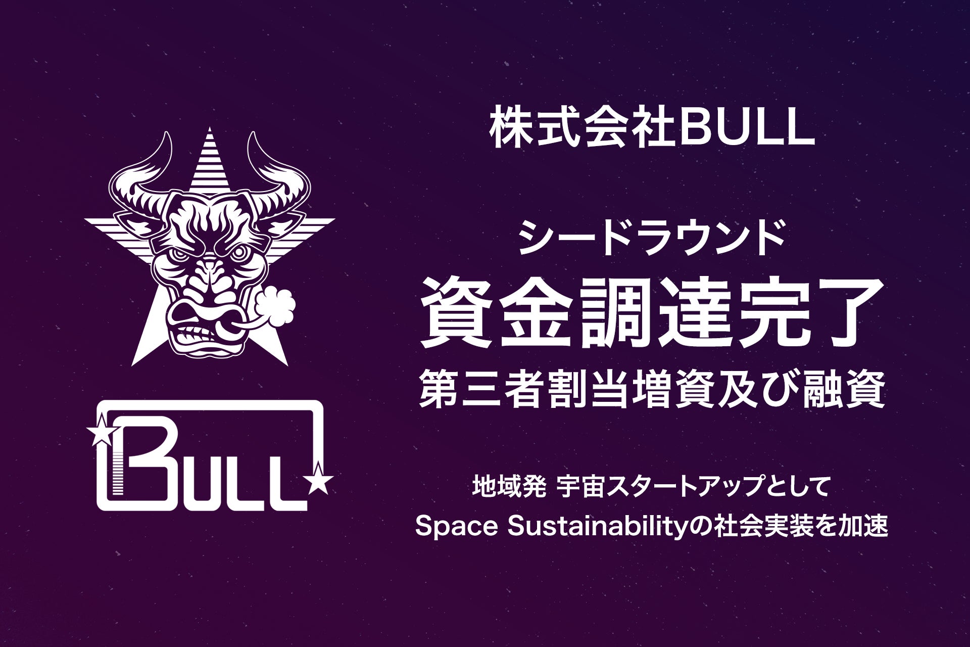 "地球内外の惑星間の行き来を『当たり前』にする"をビジョンに掲げ、宇宙デブリの発生防止(Post Mission Disposal:PMD)装置の開発を進める株式会社BULL(本社:栃木県宇都宮市、代表取締役/CEO:宇藤恭士、以下「当社」)は、Frontier Innovations 1号投資事業有限責任組合および東京海上日動火災保険株式会社による第三者割当増資、ならびに株式会社足利銀行、株式会社三井住友銀行、および株式会社日本政策金融公庫からの融資を通じて、資金調達を実施したことをお知らせいたします。