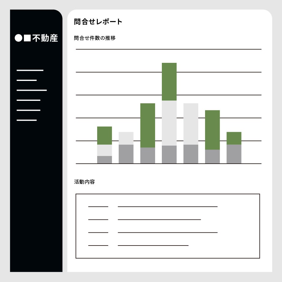 媒体別の反響数推移を分かりやすく可視化したグラフを自動生成します。さらに、販売促進活動の情報もあわせて表示されるため、結果だけでなく、日々の営業努力も売主に共有できます。
