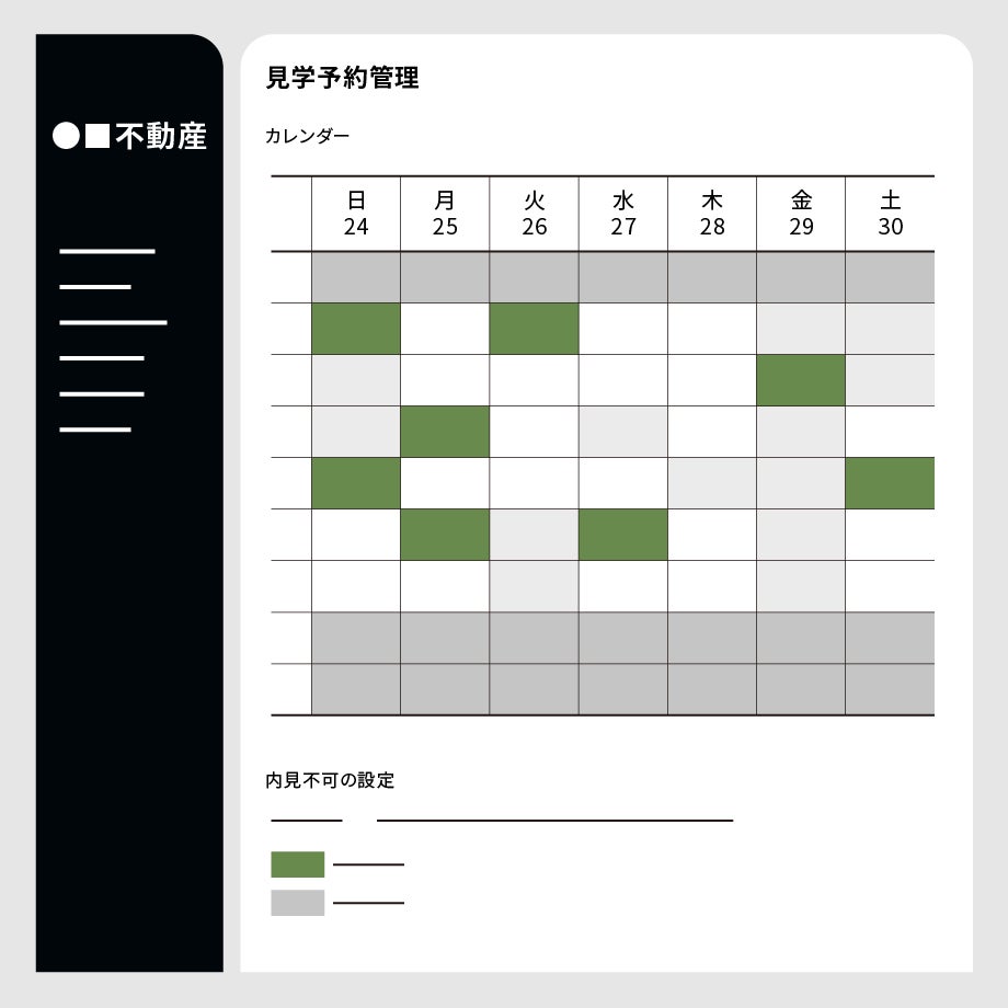 営業担当と売主がクラウド上でスケジュールを共有・管理できるため、内見の日程調整がスムーズに進められます。内見申し込みがあった際には、クラウド上で売主のスケジュールを直接確認できるため、メールや電話での都度確認が不要になります。