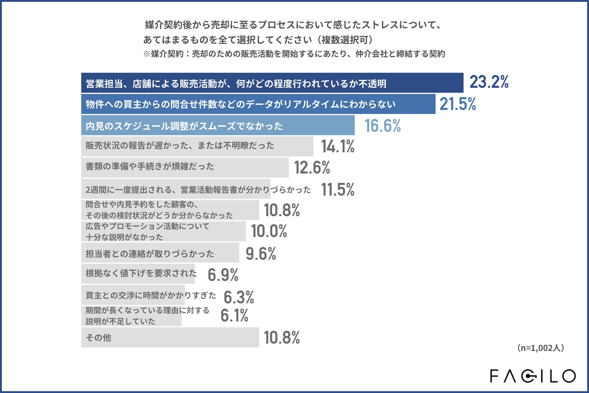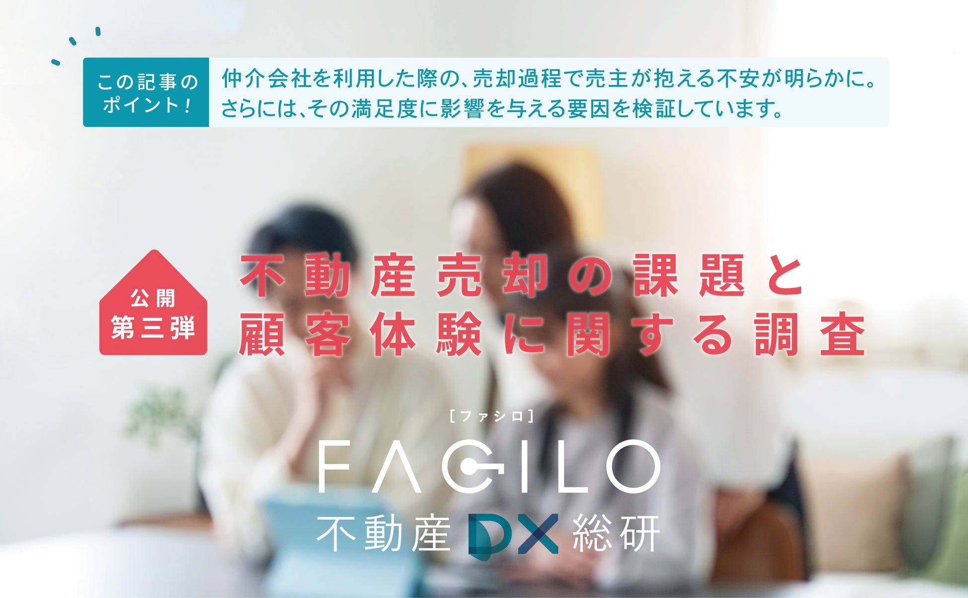 株式会社Facilo(本社:東京都港区、代表取締役 CEO:市川 紘)は、『Facilo不動産DX総研』によるリサーチ第三弾として、「不動産売却の課題と顧客体験に関する調査」を実施しました。本調査では、仲介会社を利用した不動産売却の過程で、売主が抱える不安や売却に対する満足度を左右する要因を分析しています。