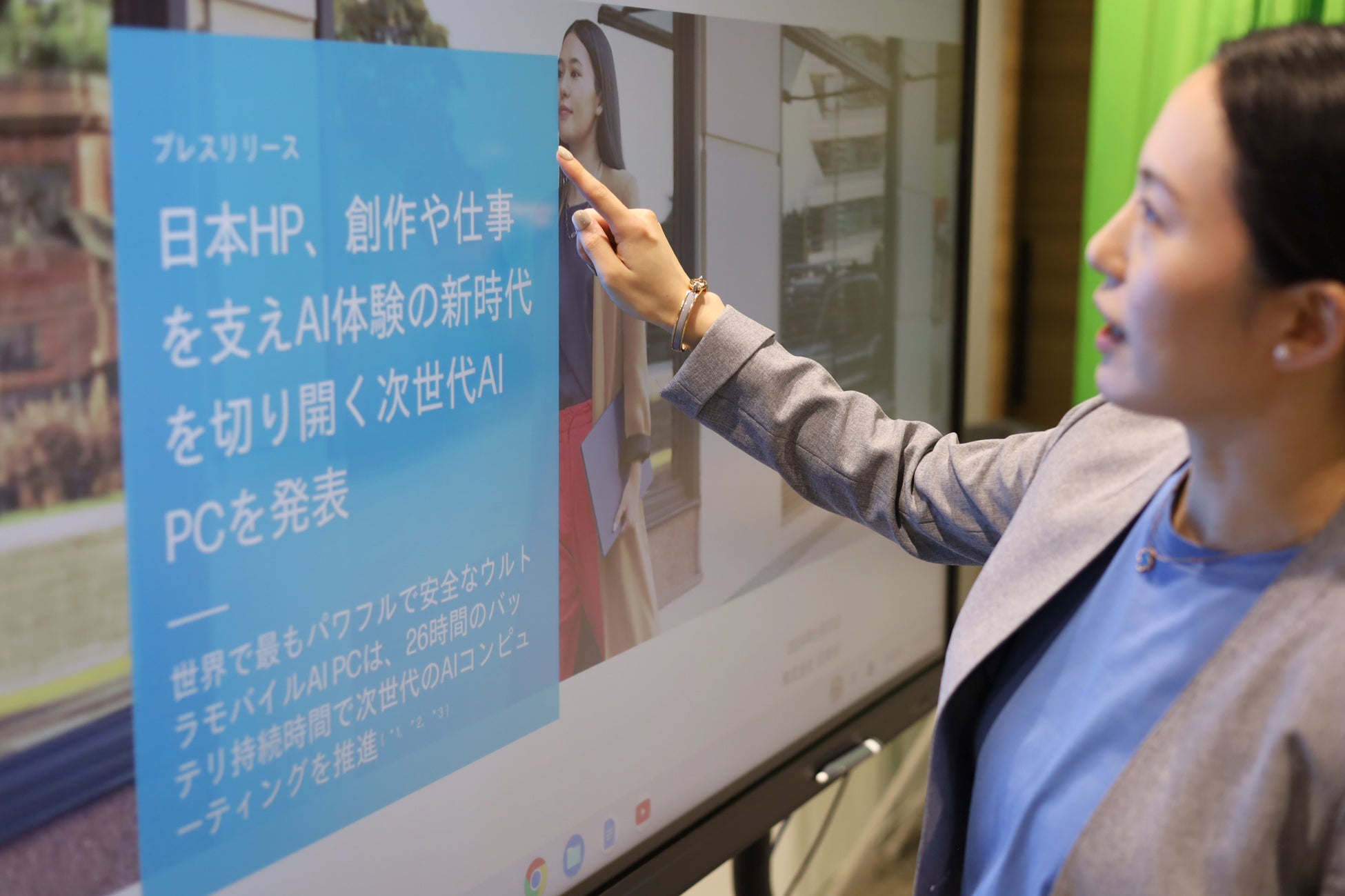 2024年7月、HP製品の魅力を発信する拠点「Customer Welcome Center」に導入されたのが『MIRAI TOUCH Biz』です。製品の購入を検討されるお客様に向けたプレゼンテーションや、日々のブレスト会議でお使いいただいています。
