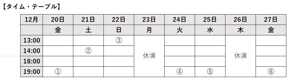 日程 2024年12月20日(金)~2024年12月27日(金)