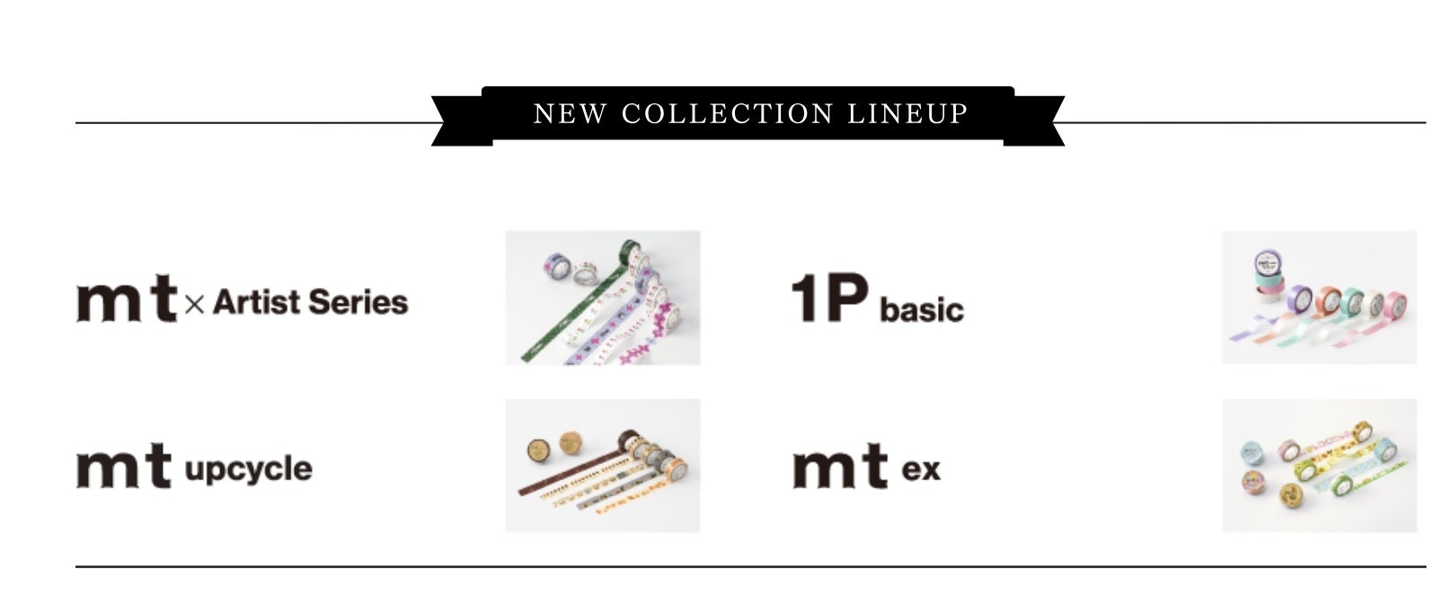 廃材を活用したアップサイクル商品や、シルクのような風合いのマスキングテープ、アーティストとのコラボレーションを通して、mtによる新しい表現が詰まったコレクションです。