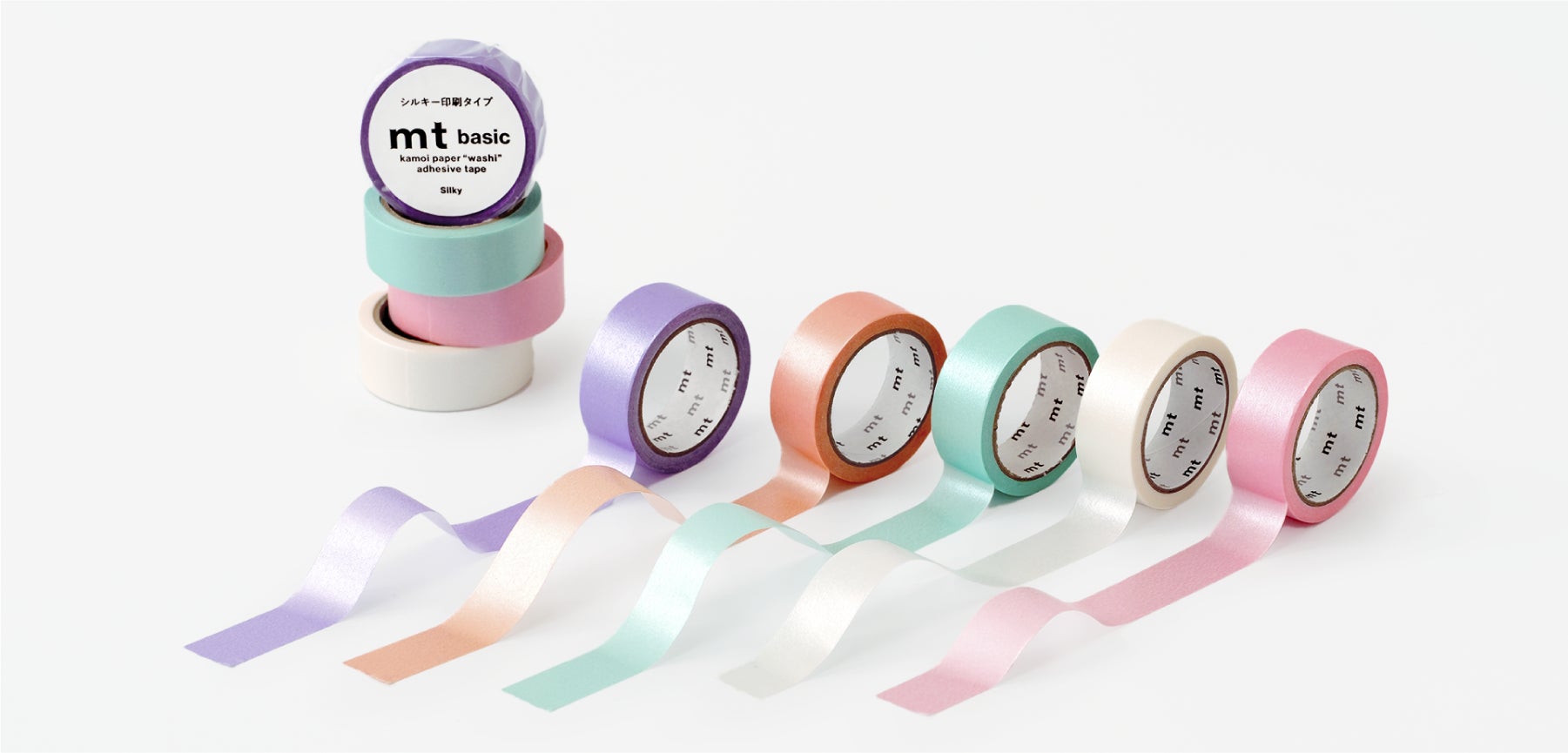 シルクのような上品な光沢が特徴のシルキーテープ。柔らかいパステルカラーの5色が登場しました。