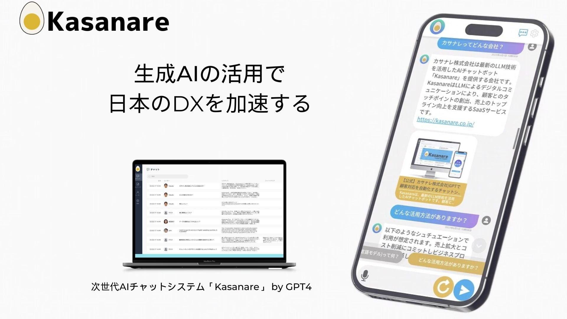私たちカサナレ株式会社は、Generative AIの実装により顧客の心を捉え、新たな価値を紡ぎ出します。