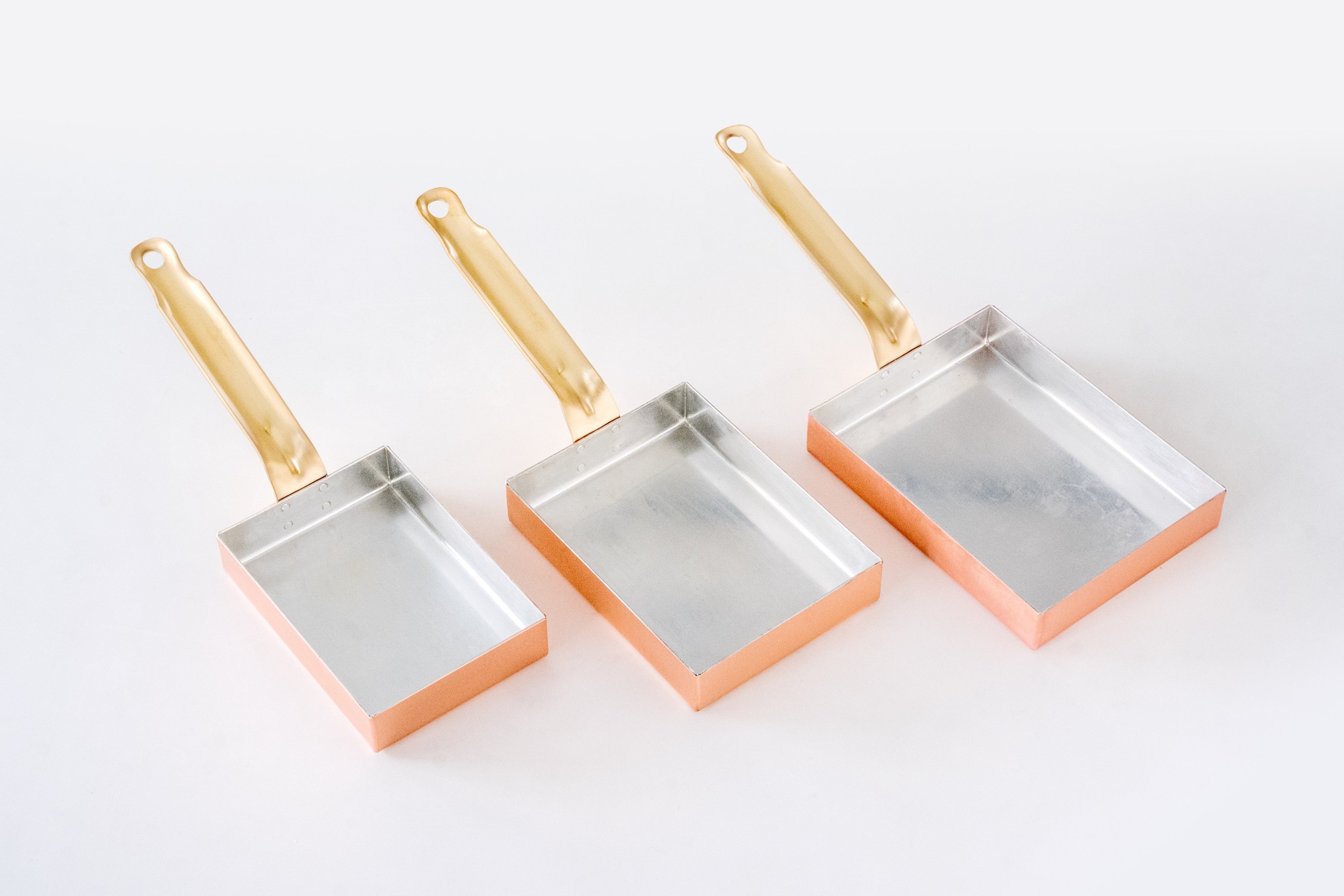 ①ふっくら焼き上げる、真鍮取手の銅玉子焼器「真鍮取手玉子焼器」
