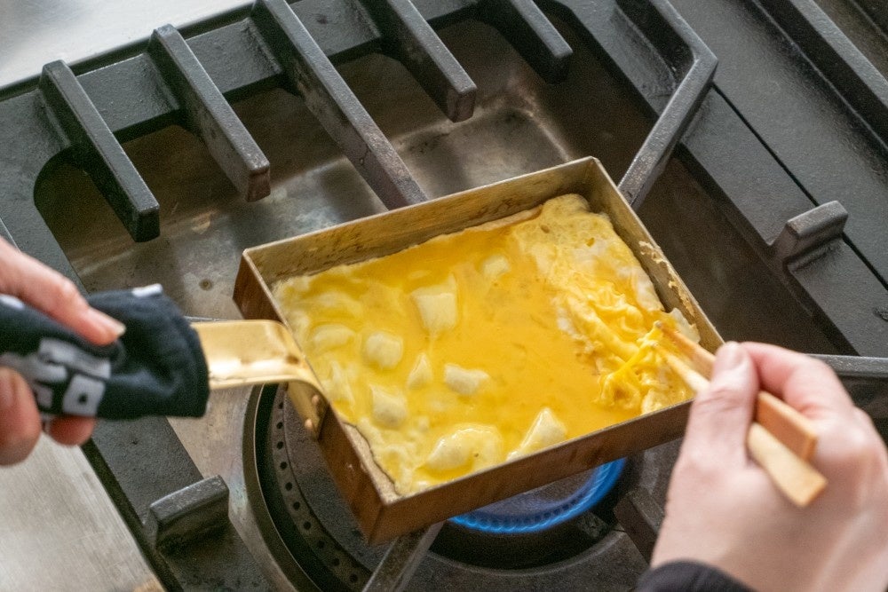 熱伝導に優れた銅製の玉子焼器は、火加減が安定しやすく、卵の水分を保ったままふっくらとした玉子焼きに仕上げることができます。