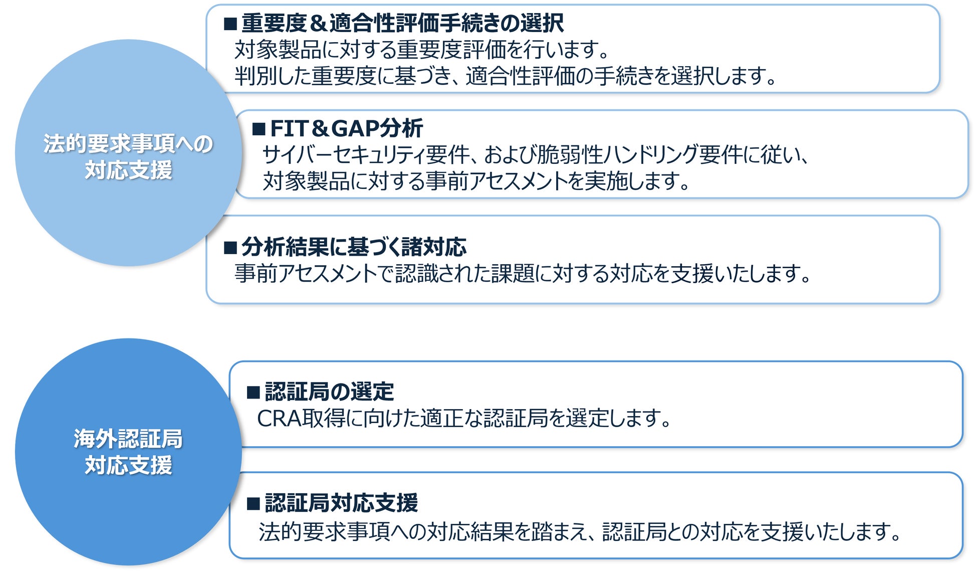 セキュリティ認証取得支援の豊富な実績とグローバル人材を活用し、CRA認証取得を強力にサポート。まずはお気軽にご相談ください。