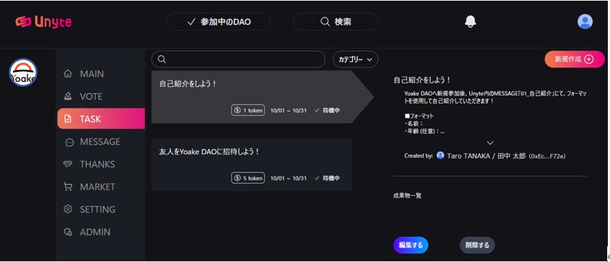 また運営ツールには、DAO構築・運営のための統合プラットフォーム「Unyte」を採用。メッセージや投票、暗号資産管理などDAO運営に必要な各種機能が包含されたオールインワンプラットフォームの活用により、参加者の利便性向上を企図します。