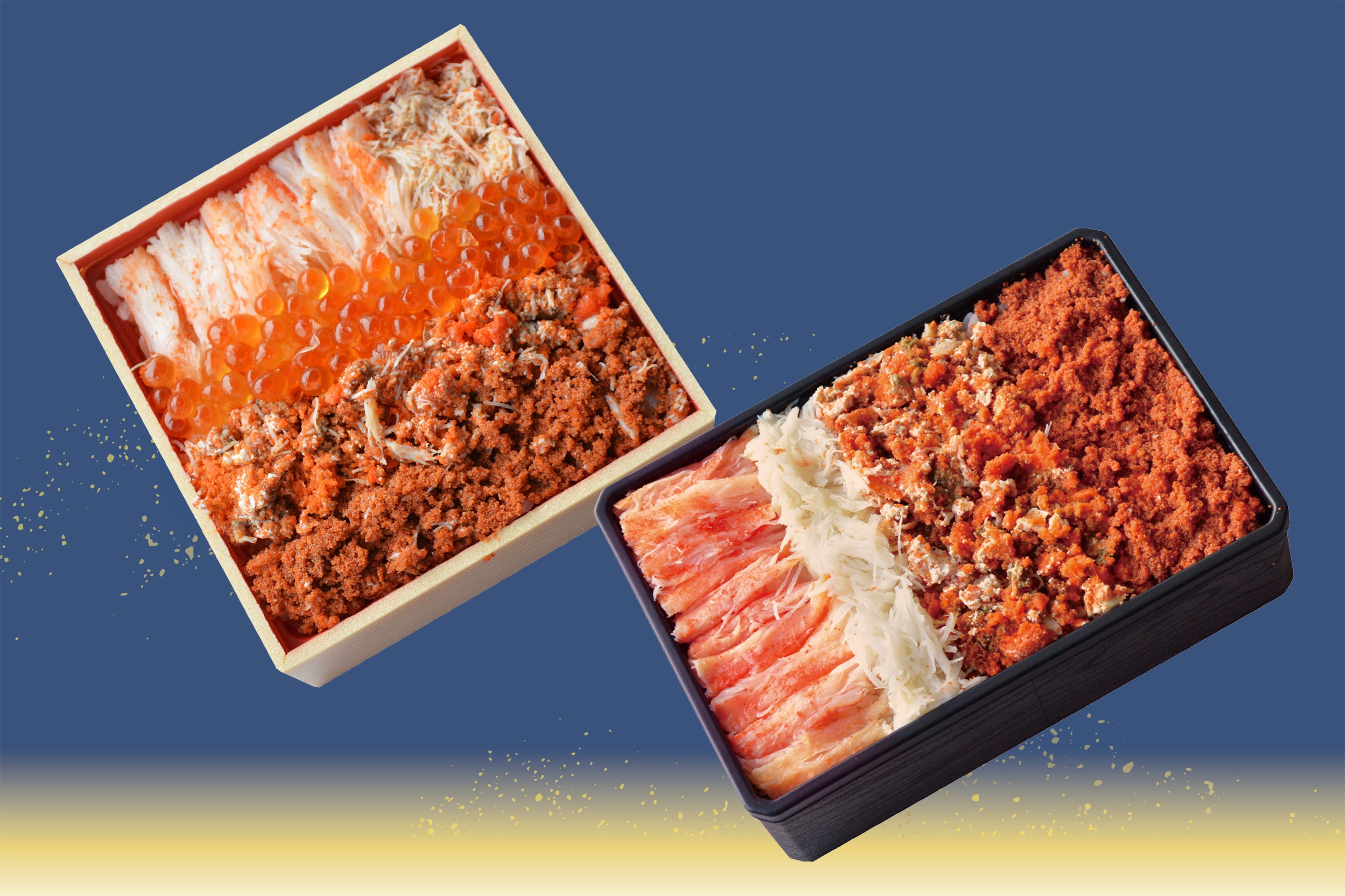 せいこ蟹の内子と外子をたっぷり使い、更にイクラをのせた豪華なお弁当。