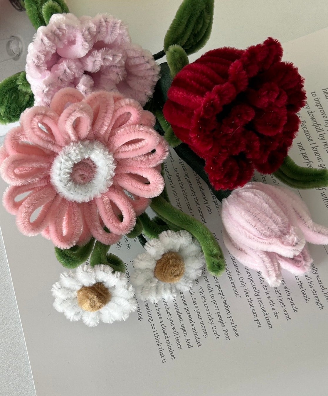 色や花びらの形、さらにお花に込められたメッセージなど、バリエーション豊かなモールフラワーをピックアップし、あなたの想いを込めたブーケを自由に束ねてみてください。