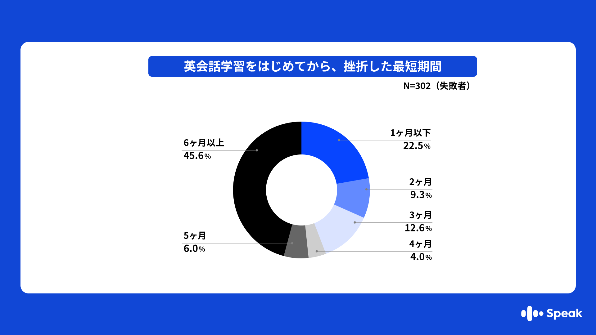 ③【3ヶ月の壁】失敗者の約半数が学習開始から「3ヶ月以内」に挫折。高い意欲で始めても、話さない学習は挫折の原因か