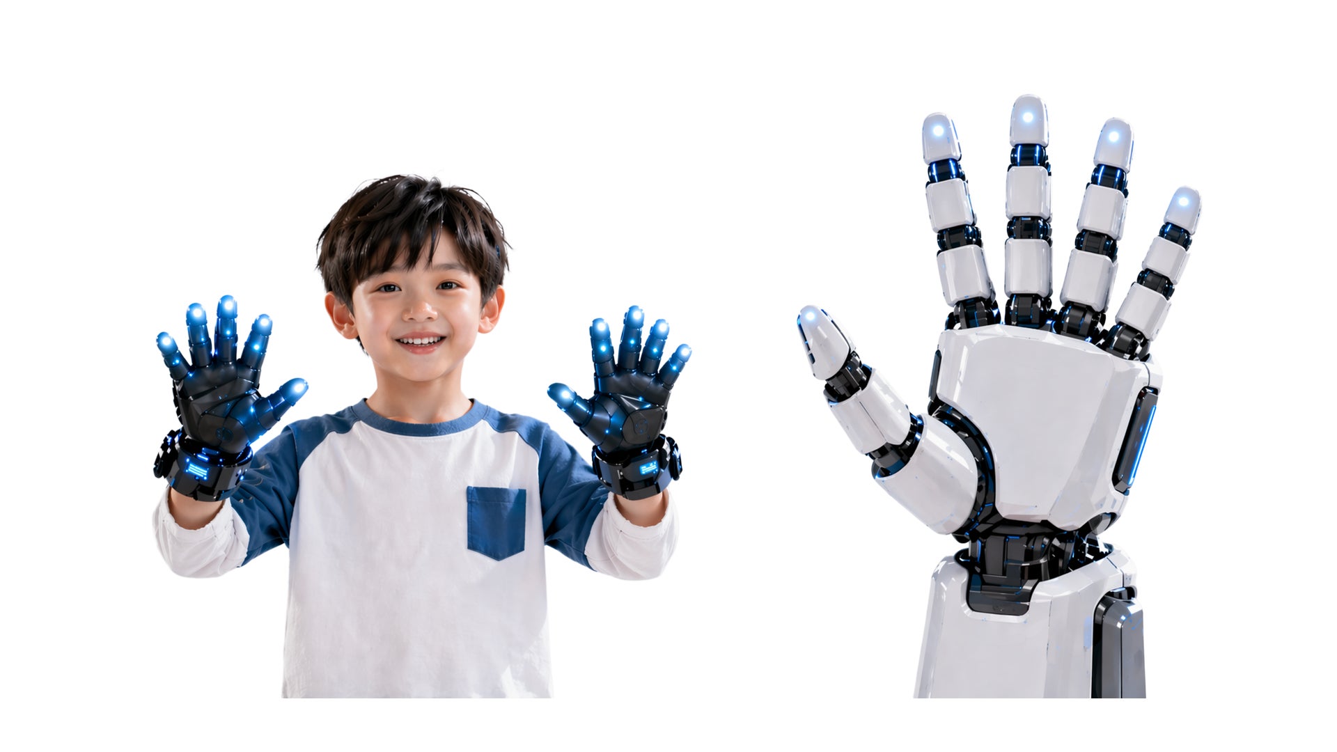 専用グローブを装着すると、自分の指の動きがそのままロボットアームに伝わります。