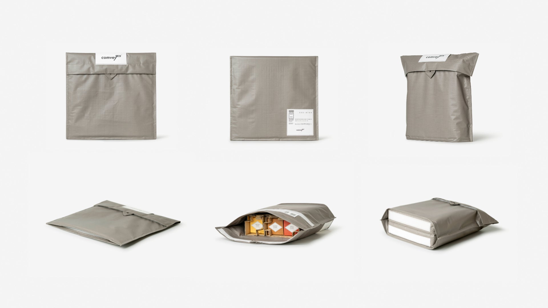 comveyのシステムが導入されたECカートでは、消費者は梱包方法をダンボール等の通常の方法にするかシェアバッグにするかを選択できます。届いたシェアバッグはポストに投函するだけで返却が可能、返却確認ができたら消費者はクーポンを獲得できます。comveyへ返却されたバッグはクリーニング・修繕が施されたのち、再びEC事業者へと提供されます。