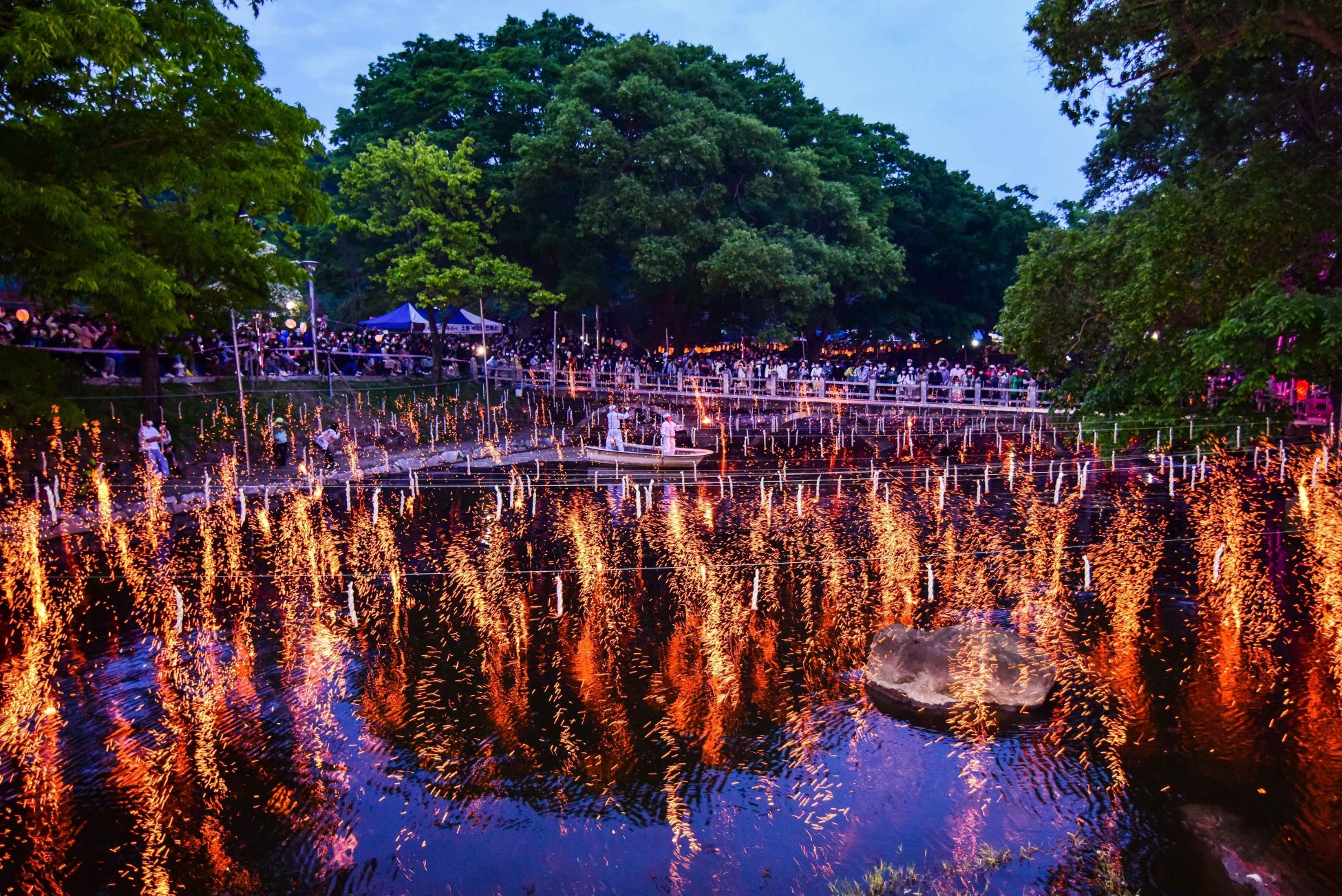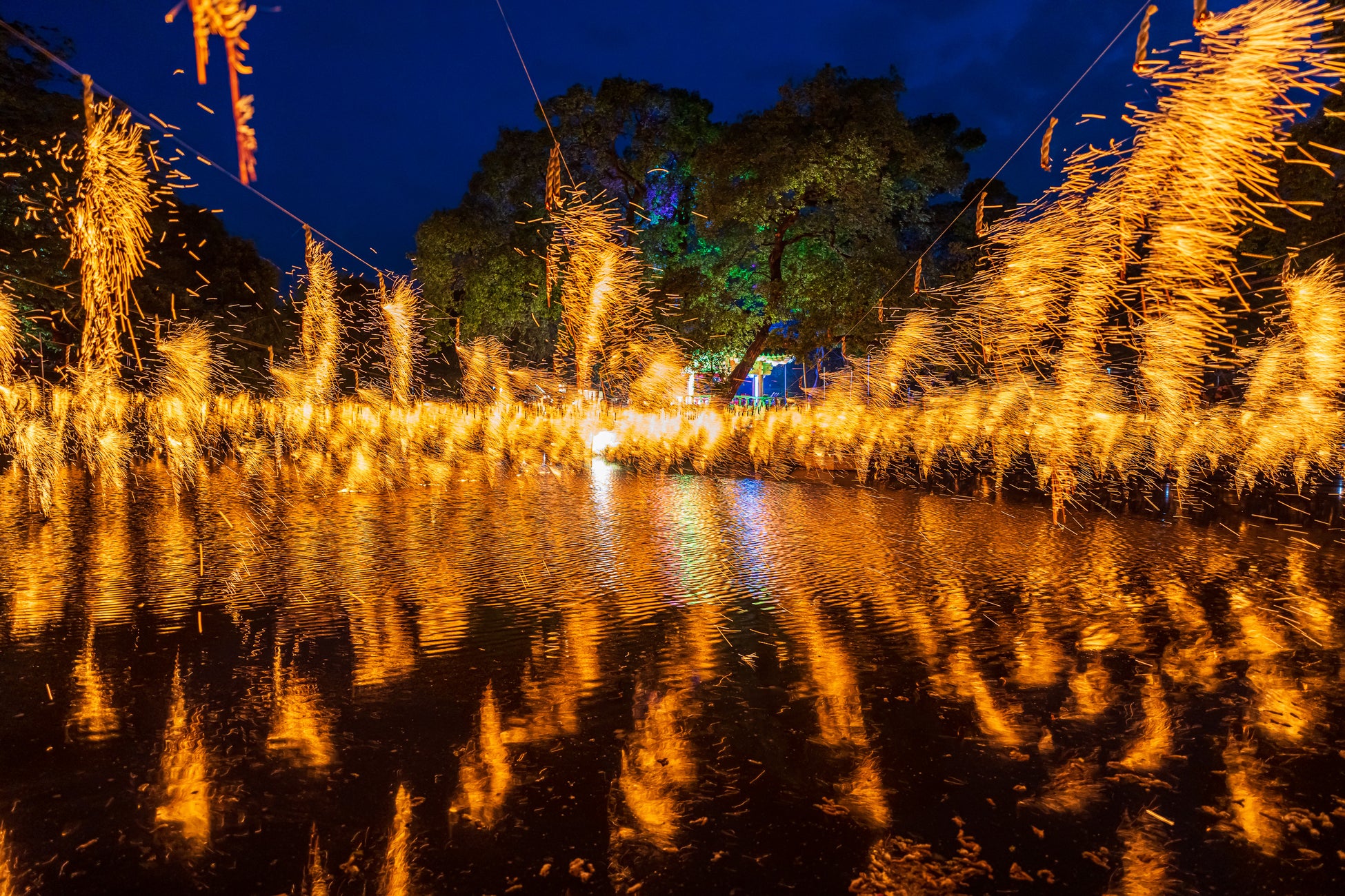 慶尚南道(けいしょうなんどう)無形遺産に指定されている咸安落火ノリは木炭粉を紙や布を使って縄状に編んだものを紐にぶら下げ点火し、火の粉が舞い落ちる幻想的な風景をつくる伝統的な火祭りです。火薬を使わずに自然素材を使用しているため環境汚染や火傷の恐れ、騒音が少なく安全なのが特長。咸安郡民の安寧を祈る意味から始まったこの民俗行事は、毎年釈迦誕生日(旧暦4月8日)に行われており、祝賀公演、祭礼行事、落火ノリ点火、招待歌手公演、花火などさまざまな見どころとともに楽しむことができます。また、咸安落火ノリは年に一度、年中行事として開催されてきましたが、人気が高まり見物客が多くなったため、2024年度からは予約制を導入するとともに旅行商品を開発し、運営しています。