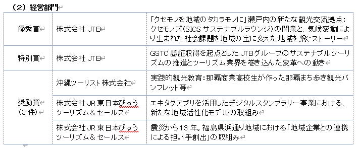 (1)会員会社が実施している持続可能な開発目標(以下、SDGs)達成に向けた優れた取組みを表彰することで、旅行業界における取組みを推進する。