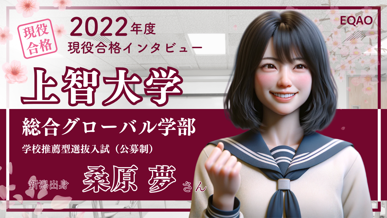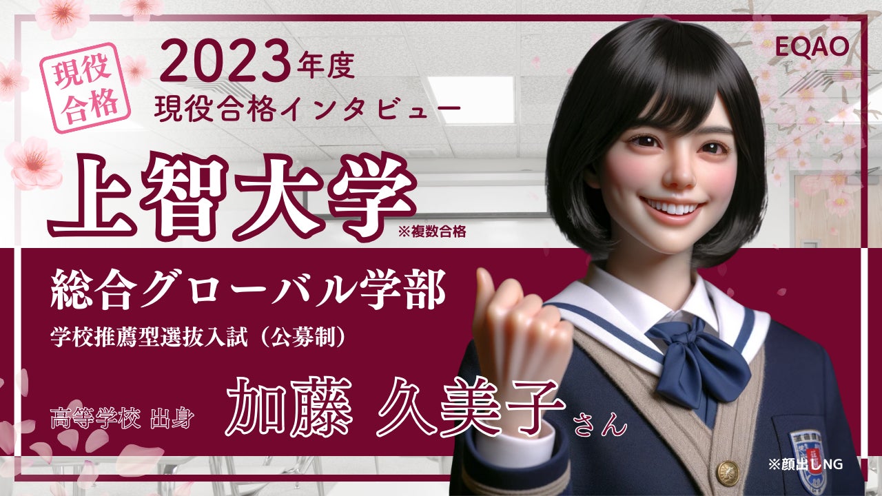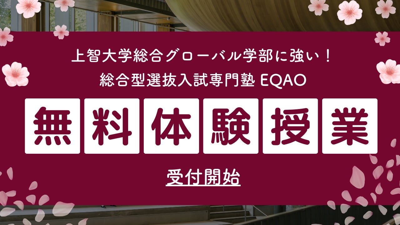 【公募推薦 上智大学総合グローバル学部】に合格したい高校生対象。総合グローバル学部出身の上智大学公募推薦入試専門塾EQAOの塾長と無料で1時間対談可能です。【総合グローバル学部】の無料相談受付開始!