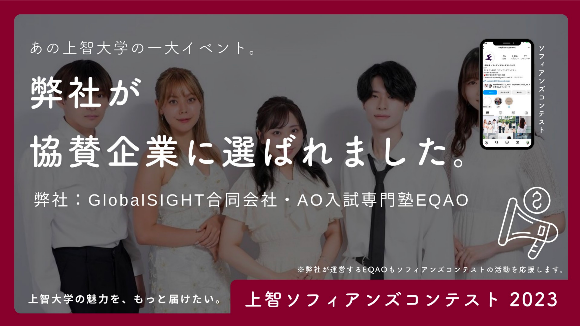上智大学公募推薦専門塾EQAOは、上智大学文化祭ソフィアンズコンテスト協賛起業です。上智大学公募推薦専門塾EQAOは、上智大学生インフルエンサーの「上京大生いとをかし」さんが上智専門コースのアンバサダーに就任しています。